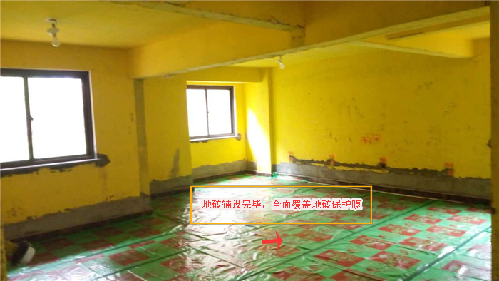 瓷磚鋪設好,用保護膜保護好