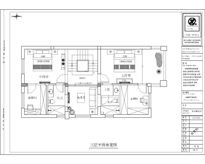 三層平面布置圖: