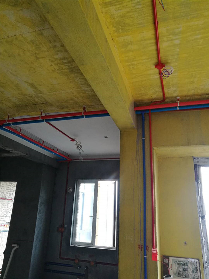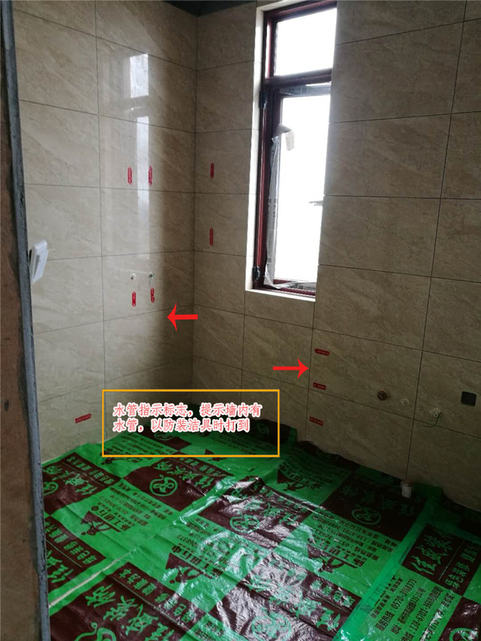 水管頂面制作外套紅藍(lán)保溫管(有問題好維修不用拆地板砸地磚不會造成更大的損失)