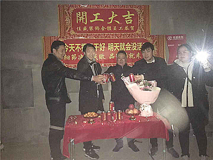 業(yè)主、設(shè)計(jì)師、項(xiàng)目經(jīng)理開工合影: