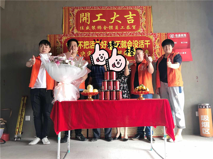 業(yè)主、設(shè)計(jì)師、項(xiàng)目經(jīng)理開工合影: